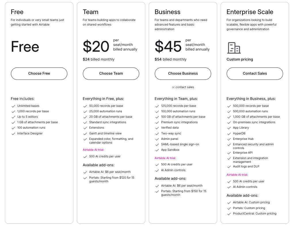 Airtableの料金体系